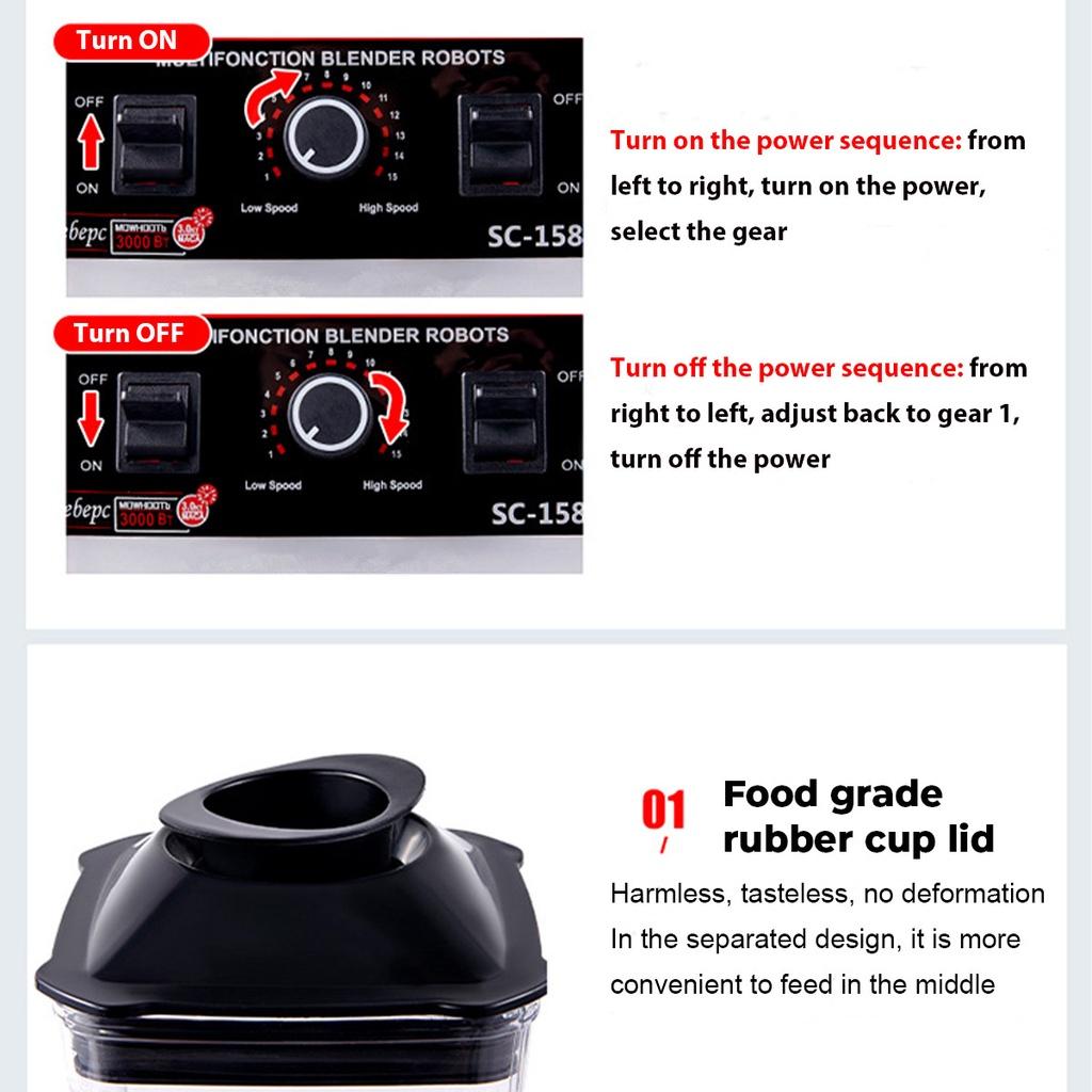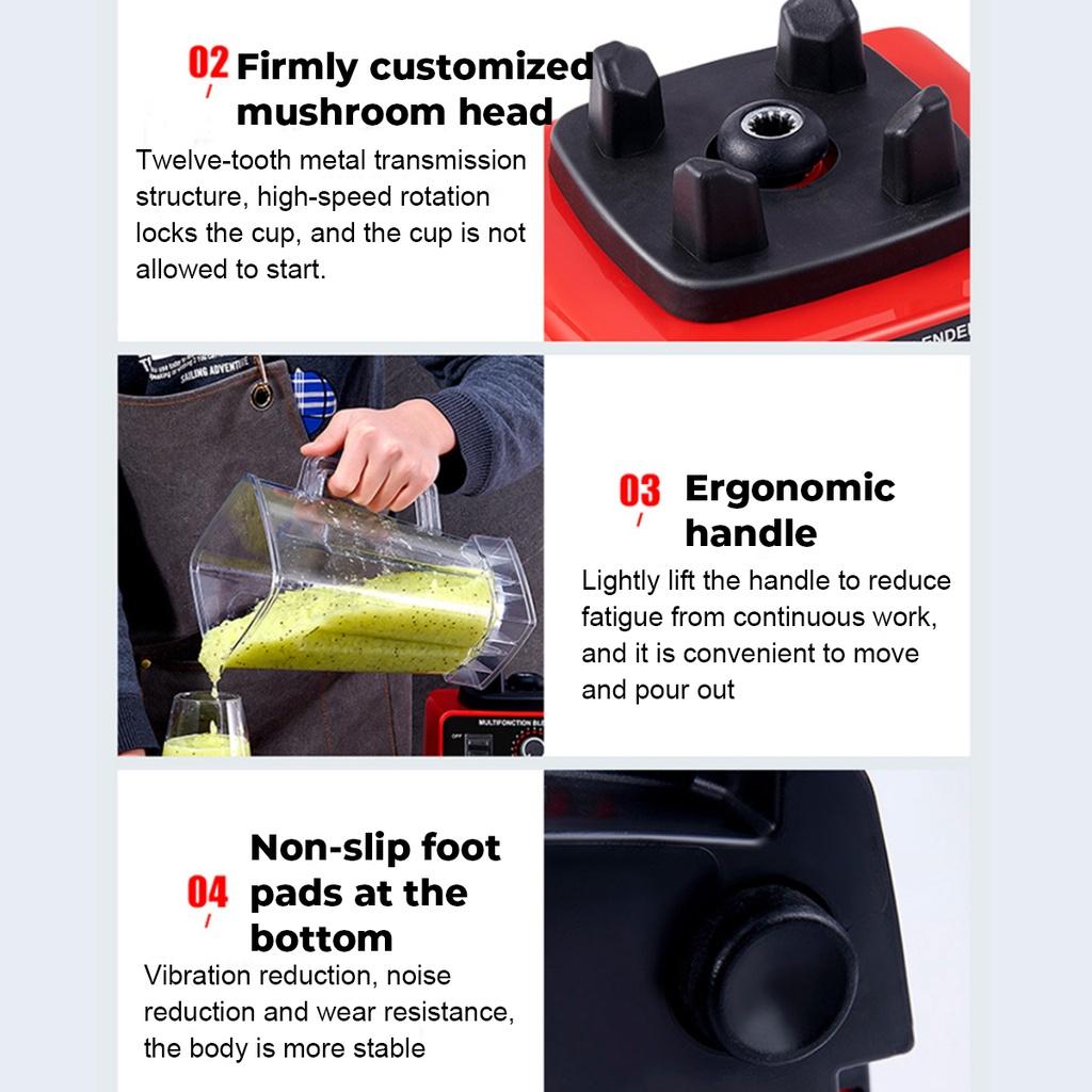 Powerful Motor: The blender is equipped with a robust 4500W motor, providing high-performance blending capabilities. This powerful motor ensures that the blender can handle a variety of ingredients, including tough fruits, vegetables, and ice, making it suitable for commercial use.