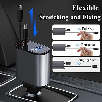 🔒 Smart Retract Feature: Forget the mess of wires! Pull and lock FlexCharge™ easily. When done, it auto-retracts for a clean, organized space.