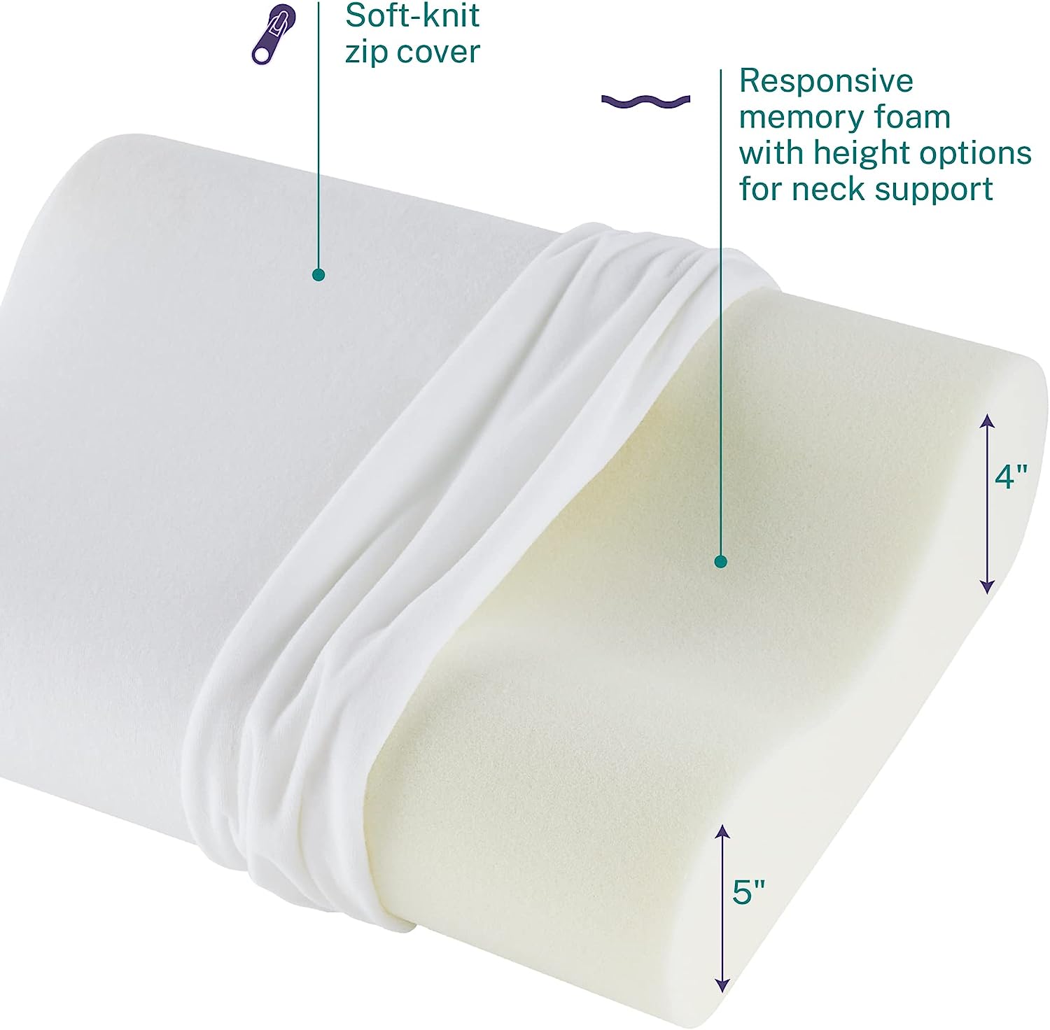 Cervical Support: Choose between the higher or lower contour depending what level of neck support you need; This memory foam pillow always holds its shape; The soft removable cover is easy to wash