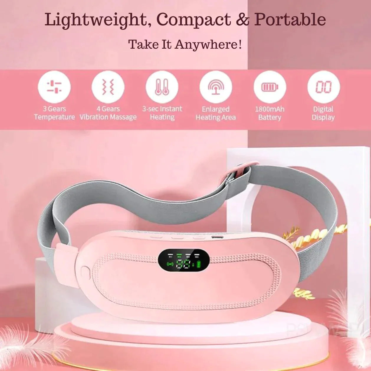 Introducing the Menstrual Cramps Relief Belt - the ultimate solution to menstrual pain. It combines gentle heating with soothing vibrations to relieve cramps, helping you regain comfort and confidence during your period. Discover the ultimate solution to a happier and more relaxed life.